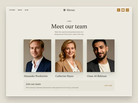 Meraas is a premium Framer template built for real estate agencies who want to look professional, trustworthy, and attract premium clients from day one. Perfect for luxury real estate agents, property consultants, and agencies helping buyers and sellers navigate high-end residential markets.
